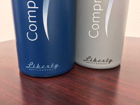 24-ounce water bottle made from recycled aluminum by Liberty Bottleworks in Union Gap, WA. Available in textured grey or smooth blue.